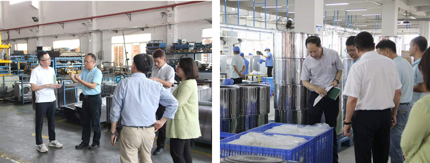 Then, Mr. Gao led the customers to the stamping workshop and assembly workshop for inspection. Mr. Gao patiently explained to the customers the production process of each clothes dryer, including the operation of automated robots, the automated spraying box line, the 5S management of the assembly line, etc. The customers listened carefully and praised Jinhuan Electrical for its meticulous and standardized management.